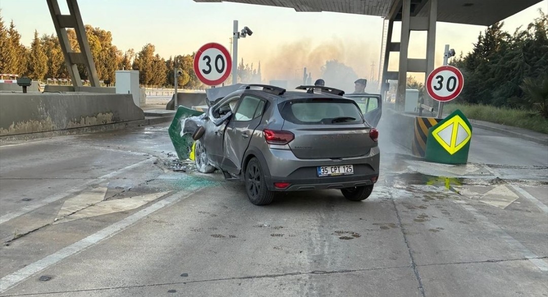 İzmir'de otoyol gişelerinde bariyere çarpıp yanan otomobilin sürücüsü öldü