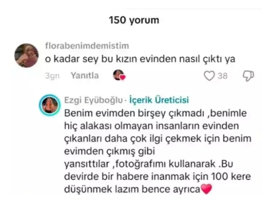 ![]() Ünlülere yönelik soruşturma kapsamında gözaltına alınan ve uyuşturucu testi pozitif çıkan oyuncu Ezgi Eyüboğlu, konuyla ilgili ilk kez açıklama yaptı. Evinden çıktığı iddia edilen madde fotoğrafları hakkında Eyüboğlu, "Daha çok ilgi çekmek için benim evimden çıkmış gibi yansıttılar" ifadelerini kullandı. Ünlü isimlere yönelik soruşturma kapsamında düzenlenen operasyonda gözaltına alınan ve uyuşturucu testi pozitif çıkan ünlü oyuncu Ezgi Eyüboğlu, evinden çıktığı iddia edilen maddelerle ilgili sessizliğini bozdu. Eyüboğlu sosyal medyada bir kullanıcının "O kadar şey bu kızın evinden nasıl çıktı ya?" yorumuna yanıt verdi. Evinden hiçbir şey çıkmadığını belirten Eyüboğlu, "Benim evimden bir şey çıkmadı. Benimle alakası olmayan insanların evinden çıkanları daha çok ilgi çekmek için benim evimden çıkmış gibi yansıttılar, fotoğraflarımı kullanarak." dedi. Eyüboğlu açıklamasının devamında "Bu devirde bir habere inanmak için 100 kere düşünmek lazım bence" ifadesini kullandı. ![]() NE OLMUŞTU? 8 Ekim 2025'ten bu yana ünlülere yönelik düzenlenen operasyonlarda çok sayıda isim gözaltına alındı; saç ve kan örneklerinde yasaklı madde tespit edildi. Bu isimlerden biri olan ünlü oyuncu Ezgi Eyüboğlu ; Cihan Şensözlü, Melisa Döngel, İrem Sak, Senna Yıldız ile birlikte gözaltına alınmıştı. Birkaç gün sonra belli olan test sonuçlarında Ezgi Eyüboğlu'nun da aralarında olduğu birçok kişide uyuşturucuya rastlanmıştı. Kaynak: Haberler.com / Magazin Konu Emre tarafından ( 2 Gün önce Saat 12:30 ) değiştirilmiştir. |