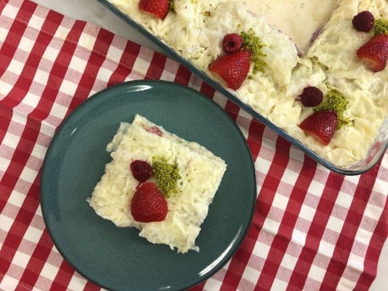 Beyaz Çikolata Şerbetli Frambuazlı Güllaç için