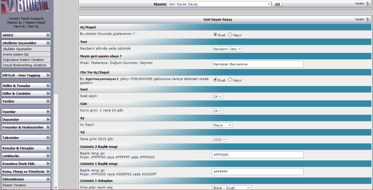 vBulletin Seçenekleri >>> Geri Sayım Sayaç
